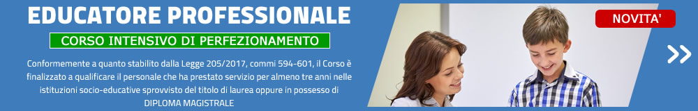 Conformemente a quanto stabilito dalla Legge 205/2017, commi 594-601, il Corso è finalizzato a qualificare il personale in servizio nelle istituzioni socio-educative sprovvisto del titolo di laurea affinché sia in grado di operare con adeguate conoscenze e competenze nei diversi servizi e contesti formali e non formali del sistema italiano di istruzione , educazione e formazione.